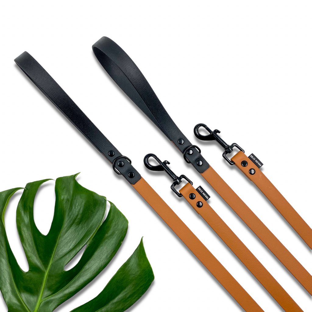 Biothane® vypadá jako kůže, ale na rozdíl od ní se nezalekne vody, bláta ani každodenního tahání. Je pevný, pohodlný do ruky a pořád drží tvar – takže ti vodítko vydrží roky, ne jen jednu sezónu.