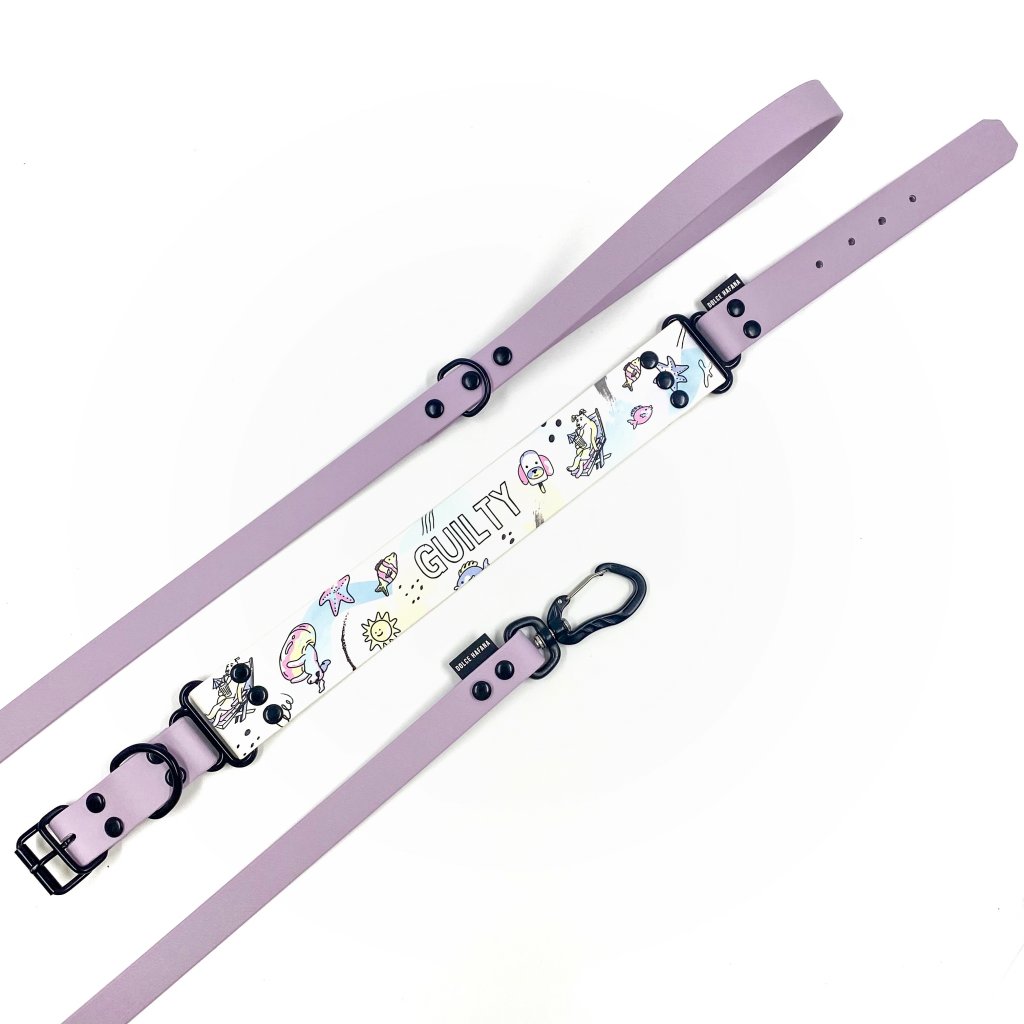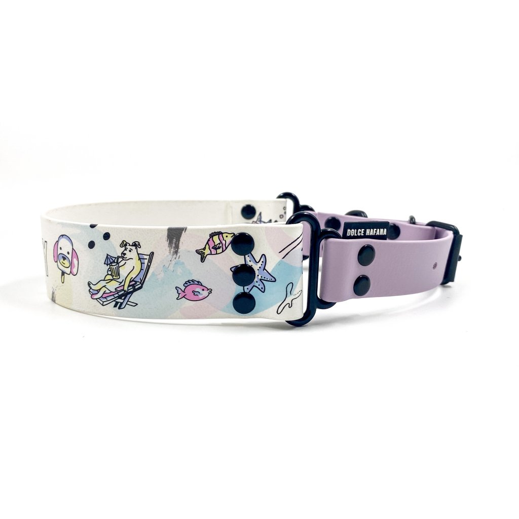 Široký BioThane obojek typu Fernie s originálním letním motivem Summer v levandulovém provedení.