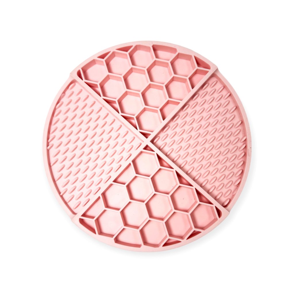 Lízací podložka má mnoho silikonových přísavek, proto skvěle drží na hladkém povrchu, což oceníte při koupání, stříhání drápků nebo jiném neoblíbeném ošetřování. Je skvělá jako zpomalovač jedení či pro zábavnou lízací hru, v létě jí můžete zamrazit i s dobrotami a dopřát tak pejskovi mlsné ochlazení. Podložka je vyrobená ze 100% potravinářského silikonu.