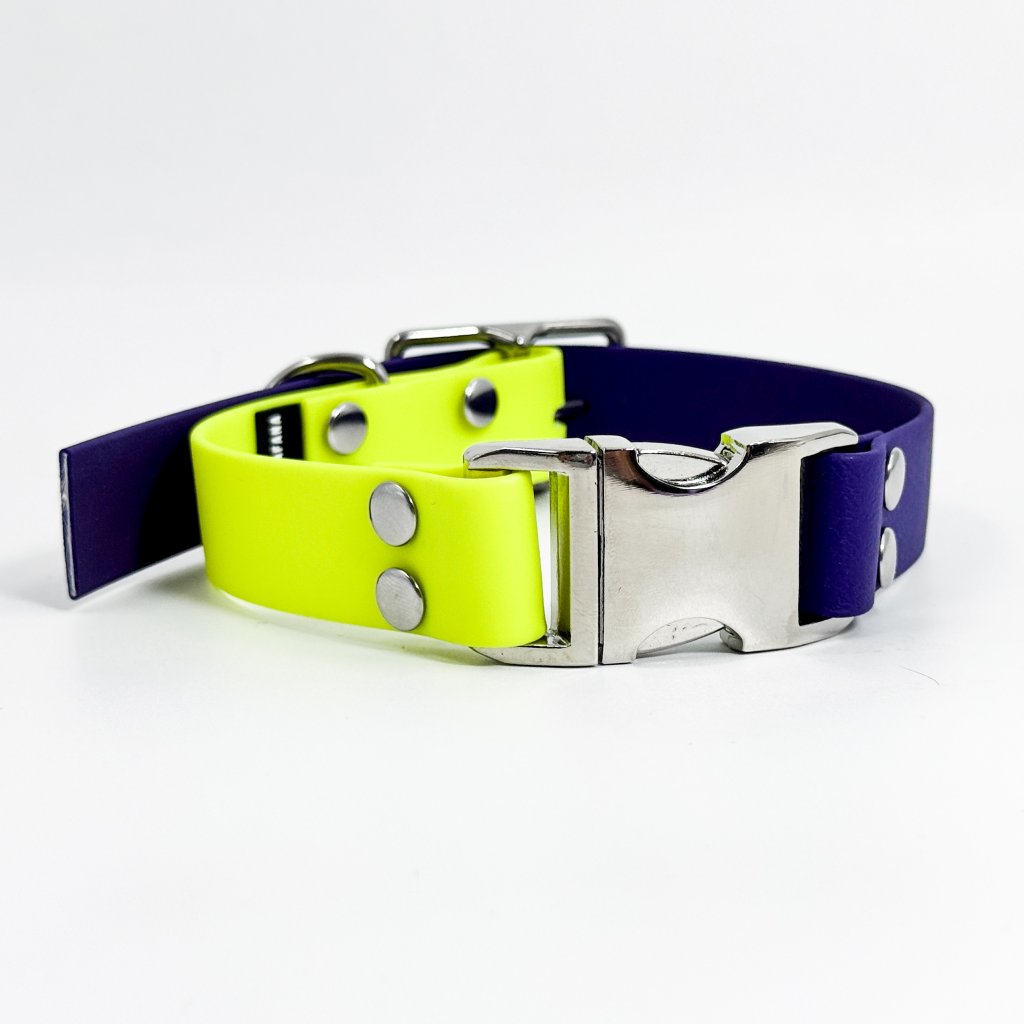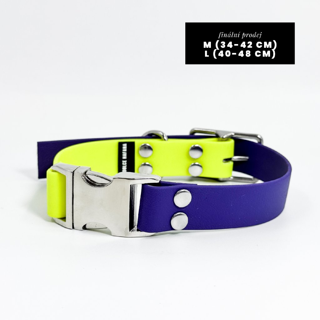 Obojek pro psa KLIK Standard 2.5 cm neon žlutá & fialová & nerez