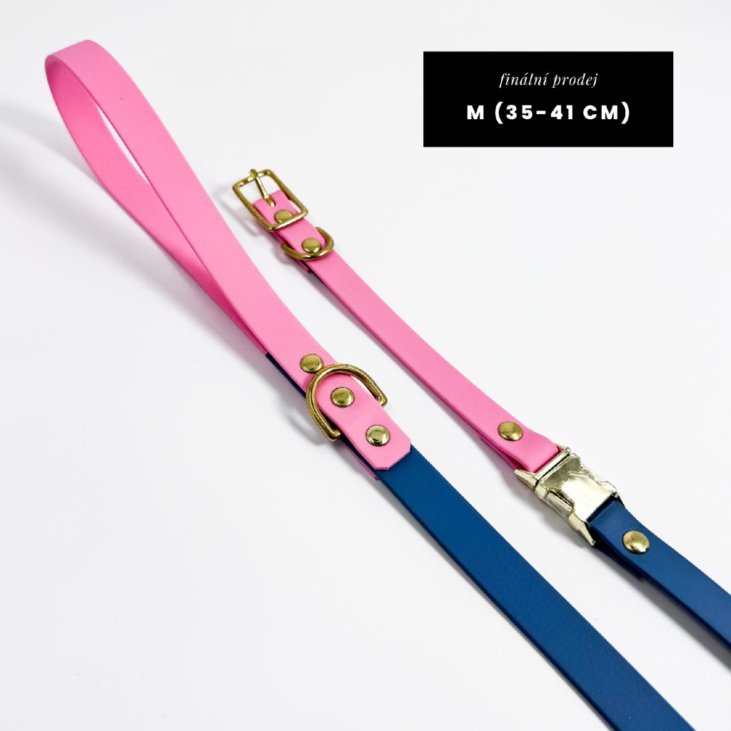 Set Tradiční obojek Standard petrolejová & pastelová růžová + vodítko 150 cm & růžové zlato