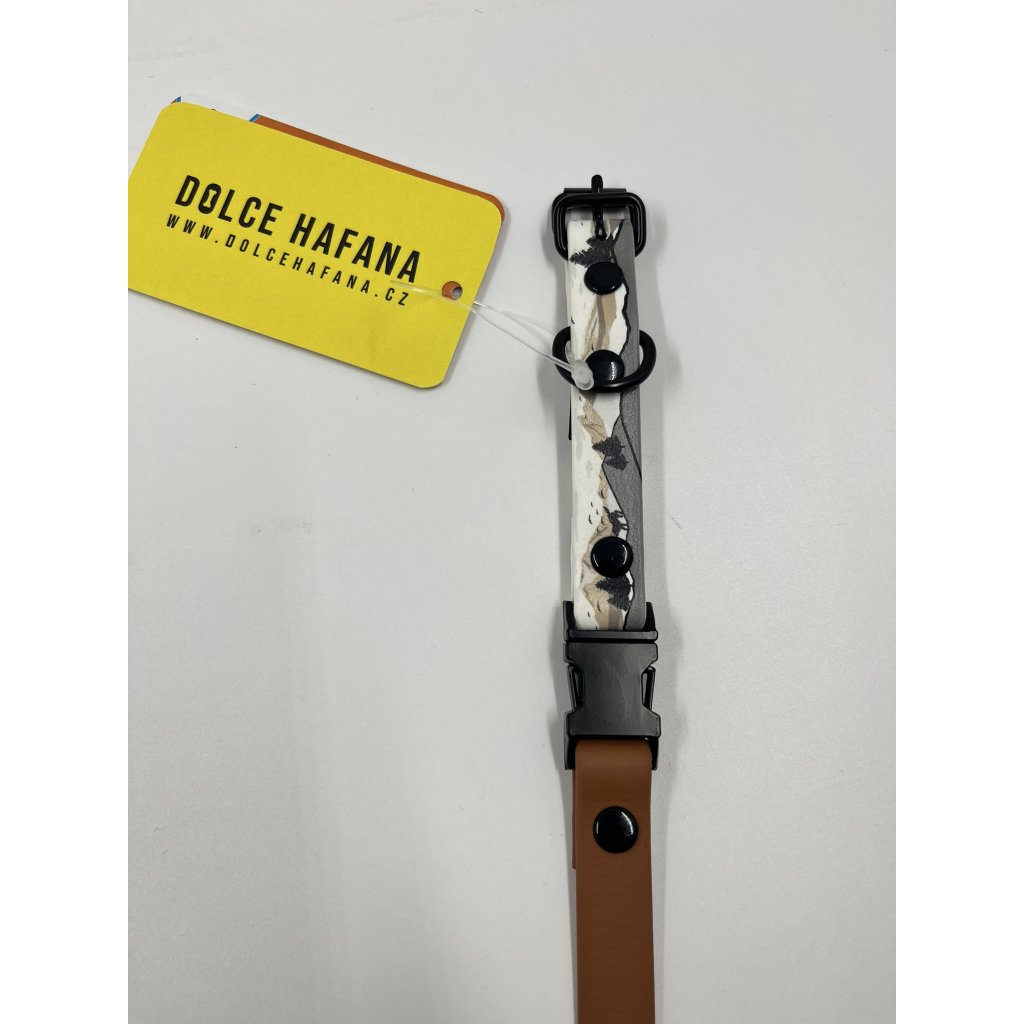 TACTICAL obojek pro psa Mini 1.6 cm ve velikosti pro obvod krku 22 cm s motivem WILD v kombinaci s hnědou a s černým kováním a přezkou Tactical.